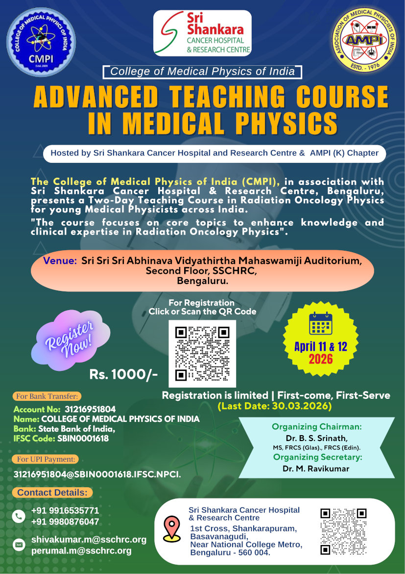 Join Advanced Teaching Course in Medical Physics hosted by SSCHRC, and AMPI-K Chapter on April 11&12, 2026!