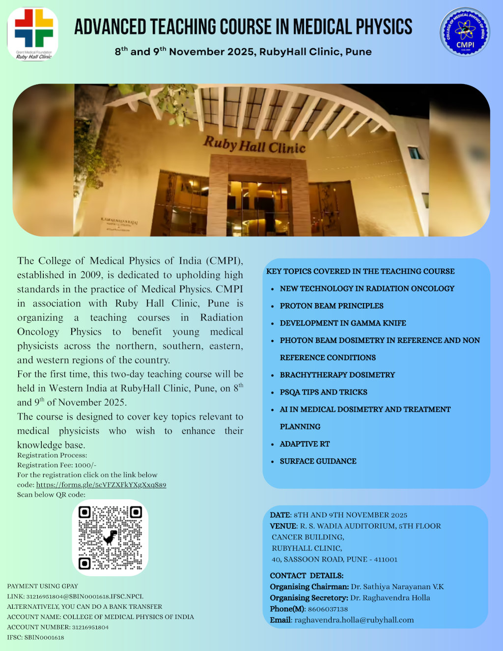 Join Advanced Teaching Course in Medical Physics on November 8-9, 2025 at Ruby Hall Clinic, Pune